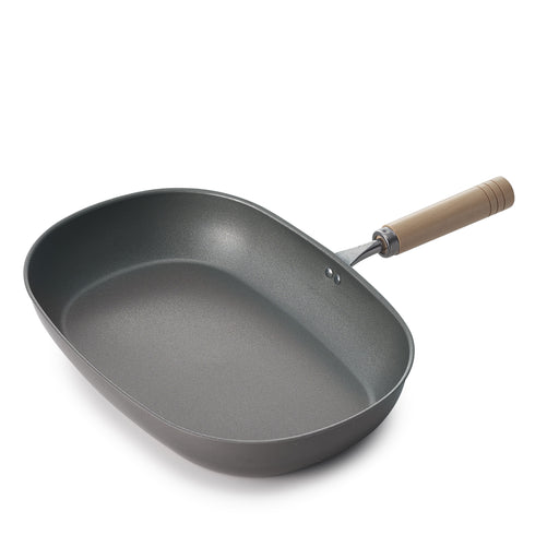 杉山金属オンラインストア使い初めの空焼き・シーズニング作業が不要な『真・匠味』シリーズ! 品番 KS-9006 JANコード 4900896190068 製品重量 620g 満水容量 1.5L 製品寸法 約23×39×8cm 深さ4.5cm 材質 本体:鉄(板厚1.2mm)ハンドル:木柄...